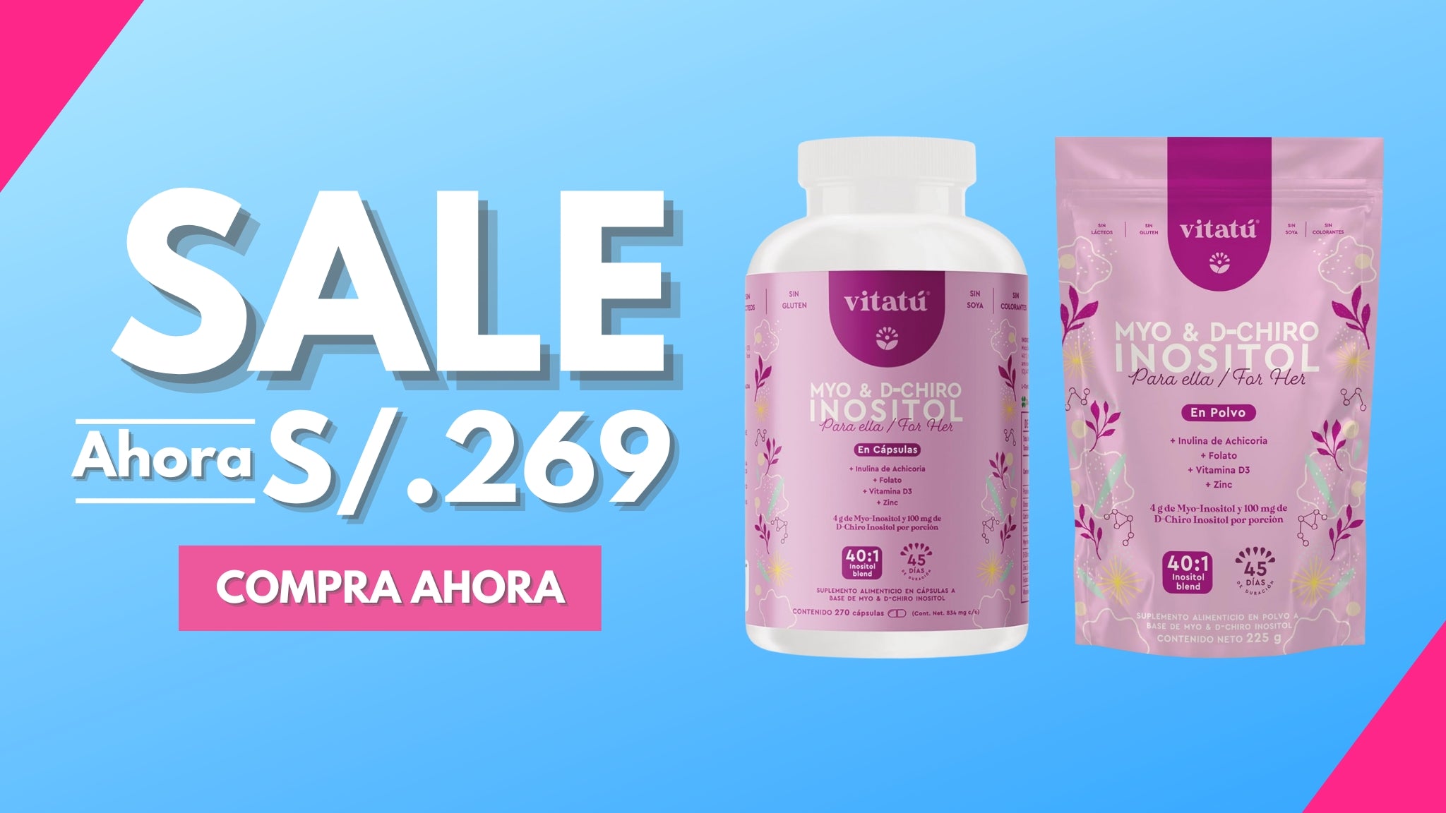 Myo Inositol, D-Chiro Inositol, Zinc, Folato y Vitamina D3. ✨