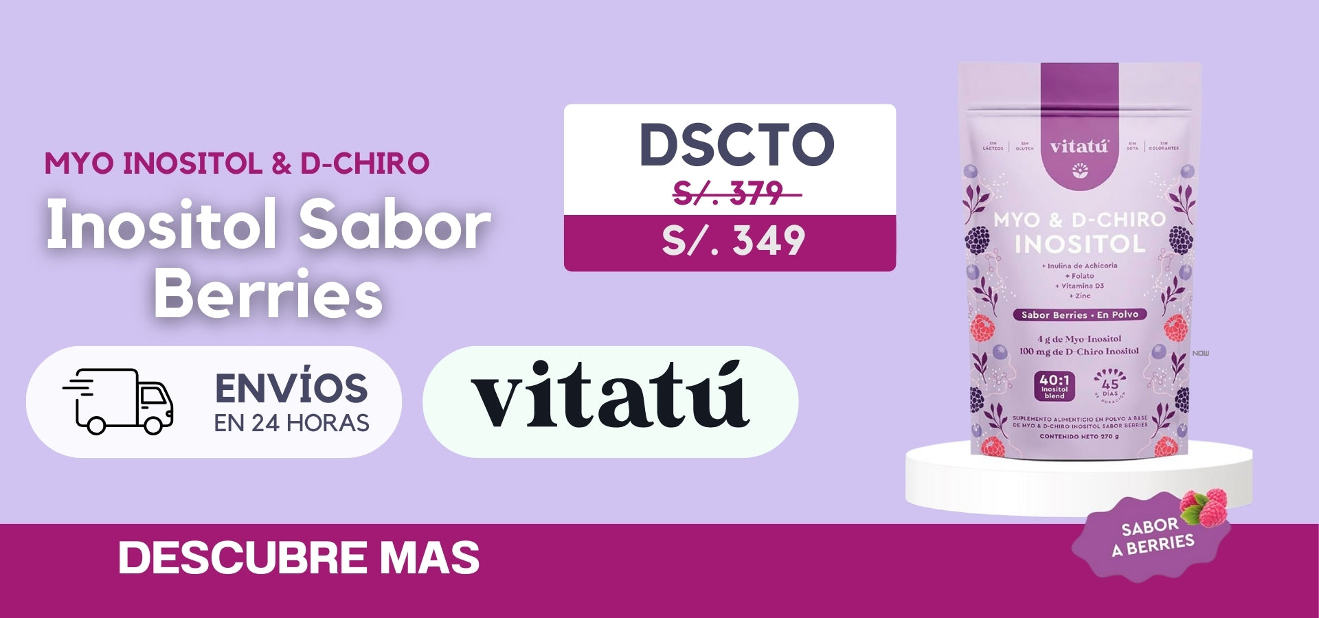 Inositol Myo & D Chiro 270 Capsulas Vitatu S/. 329.00 S/. 289.00 12% OFF Envios Shalom,Olva y Marvisur Envio Gratis Mañana
