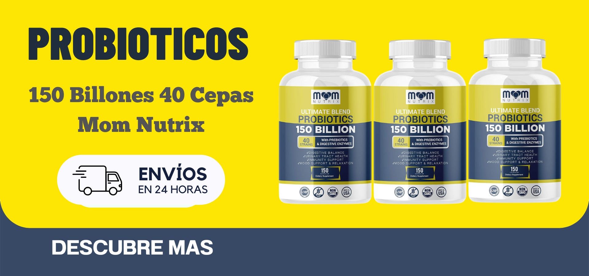 Probioticos y Prebioticos 40 Cepas 150 Billones CFU 150 Capsulas Mom Nutrix S/. 259.00 Envios Shalom,Olva y Marvisur Envio Gratis Hoy