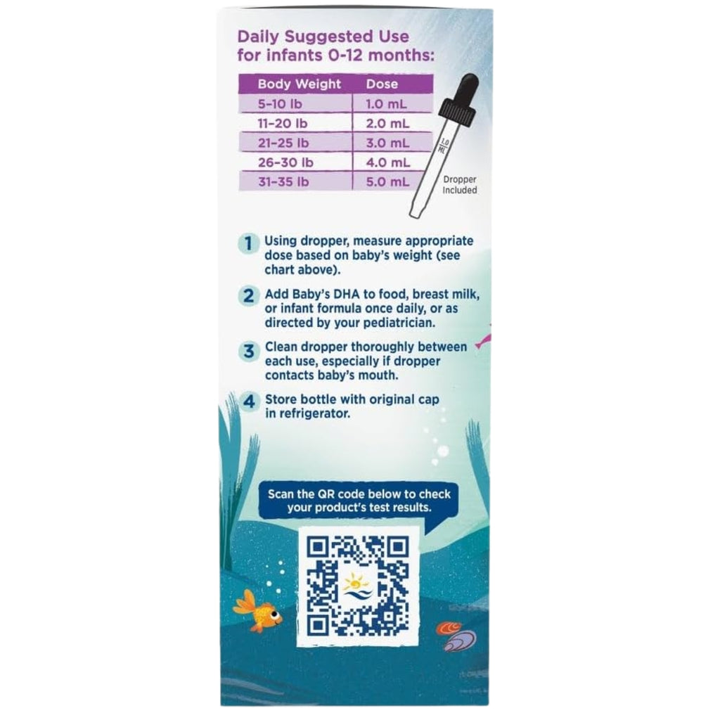 - ¿Por qué omega-3? El DHA del bebé es una fuente confiable de omega-3 DHA, una grasa esencial que tu bebé necesita para un desarrollo saludable del cerebro, los ojos y el sistema nervioso. La vitamina D3 añadida apoya la salud ósea, el estado de ánimo y el sistema inmunológico.