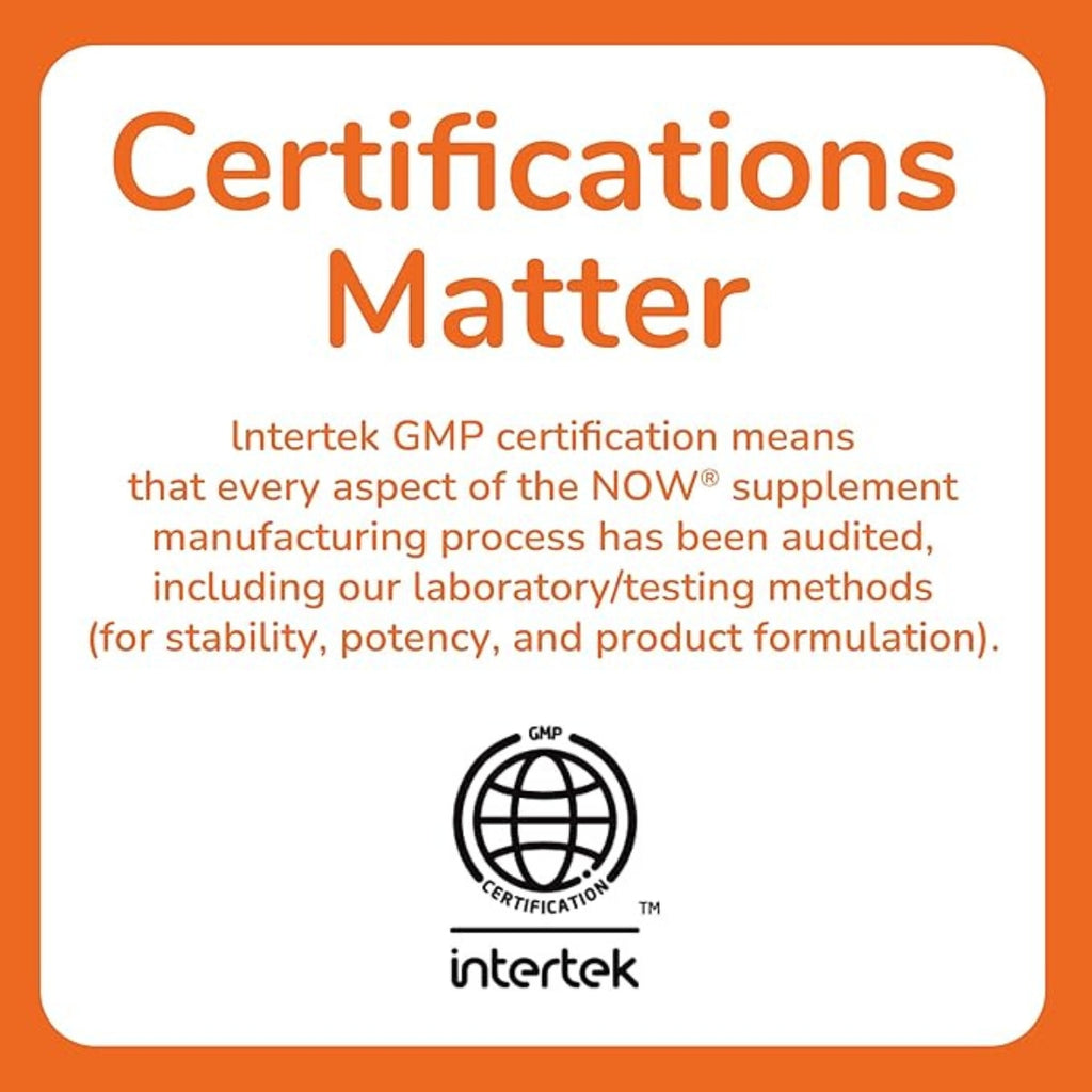 - Calidad garantizada por GMP: La certificación GMP con clasificación A de NPA significa que todos los aspectos del proceso de fabricación NOW han sido examinados, incluidos nuestros métodos de laboratorio/prueba (para estabilidad, potencia y formulación de productos)