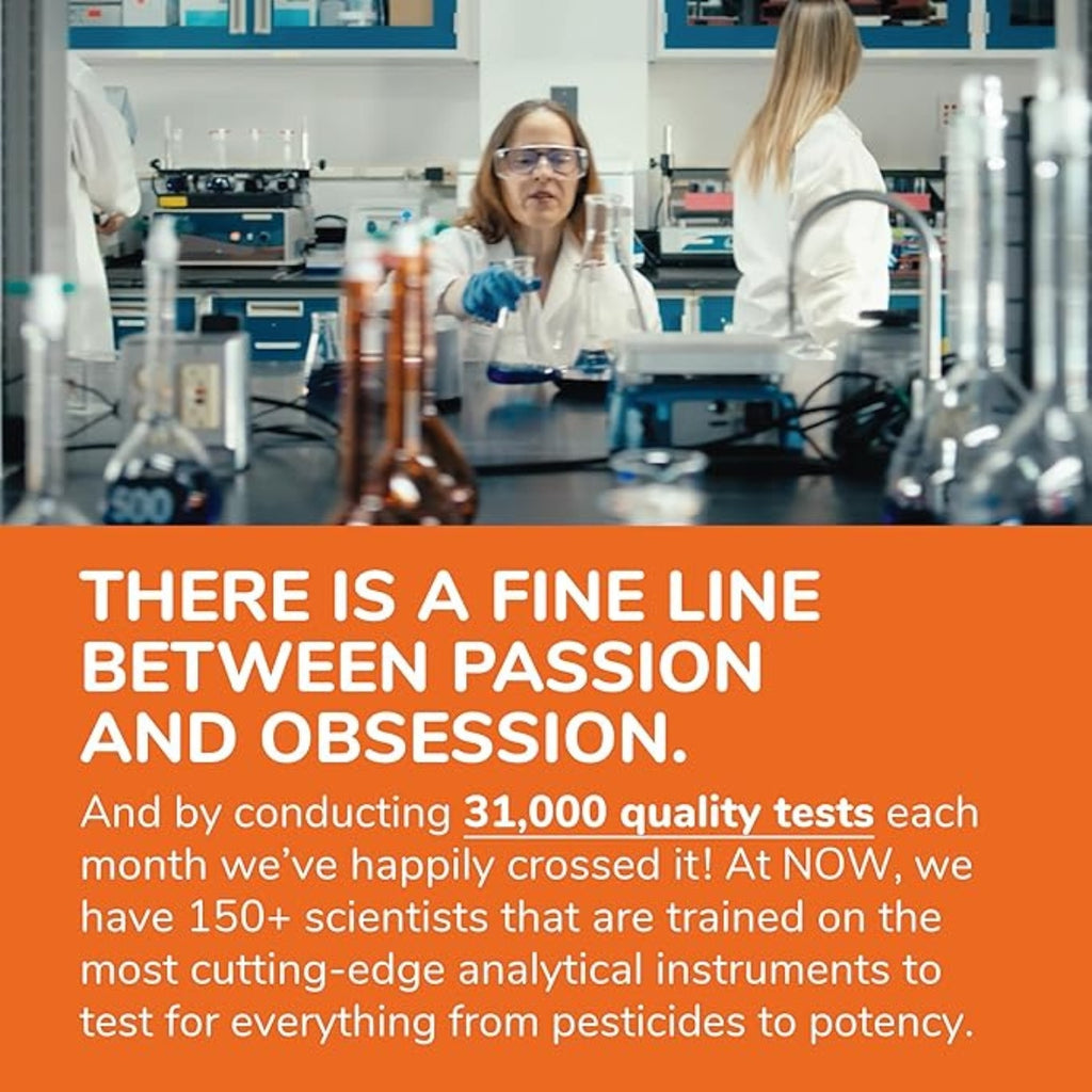 - Calidad garantizada por GMP: La certificación GMP con clasificación A de NPA significa que todos los aspectos del proceso de fabricación NOW han sido examinados, incluidos nuestros métodos de laboratorio/prueba (para estabilidad, potencia y formulación de productos)