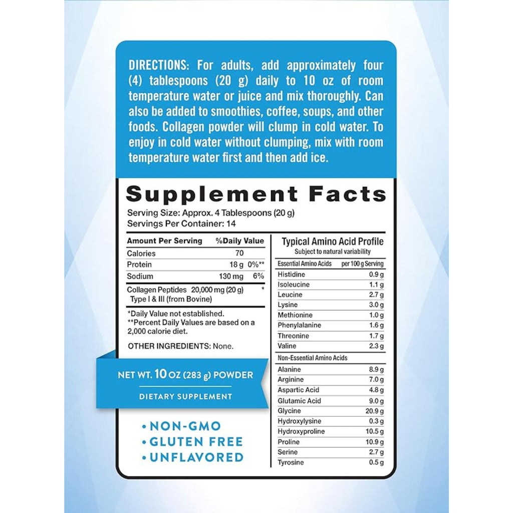 - COLÁGENO DE ALTA CALIDAD: Recibe 0.71 oz de péptidos de colágeno alimentados con pasto tipo I y III por porción